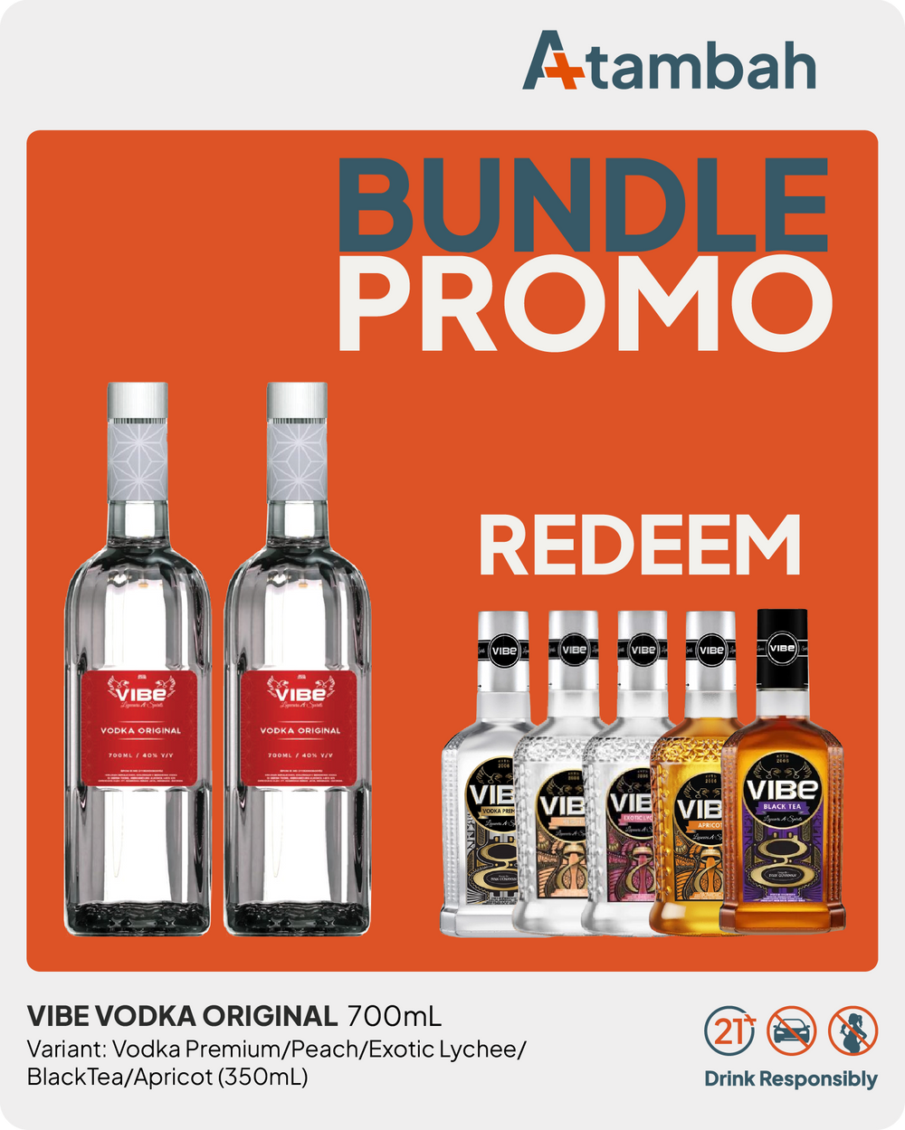 [PROMO BUNDLE] Vibe Vodka Original 700mL - buy 2 get 1x 350mL Vibe Vodka Premium/ Peach/ Exotic Lychee/ BlackTea/ Apricot